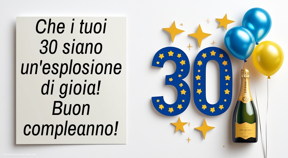 I 30 anni rappresentano un momento speciale, l’ingresso nella piena maturità e una nuova fase della vita ricca di sogni e progetti. Per rendere indimenticabile questo traguardo, abbiamo raccolto una selezione di immagini di buon compleanno per i 30 anni ⭐, perfette da condividere con amici, colleghi o persone care. Troverai cartoline colorate e divertenti, immagini eleganti con frasi di auguri e foto simpatiche per festeggiare questo compleanno unico. Ogni immagine è pensata per trasmettere gioia, affetto e un pizzico di allegria.