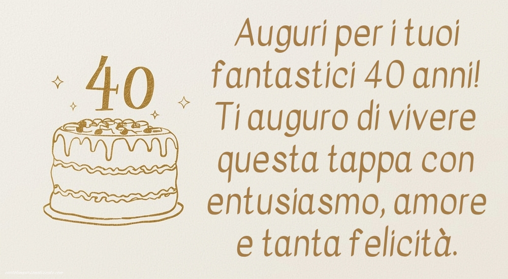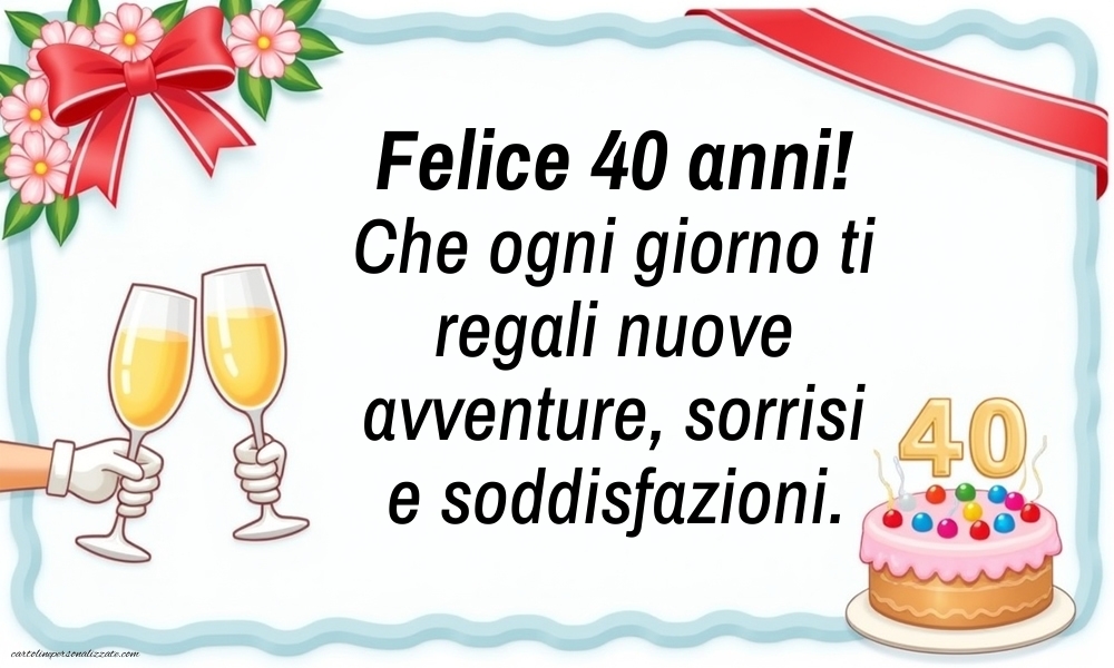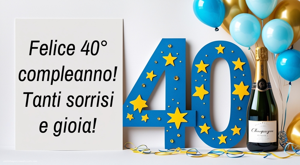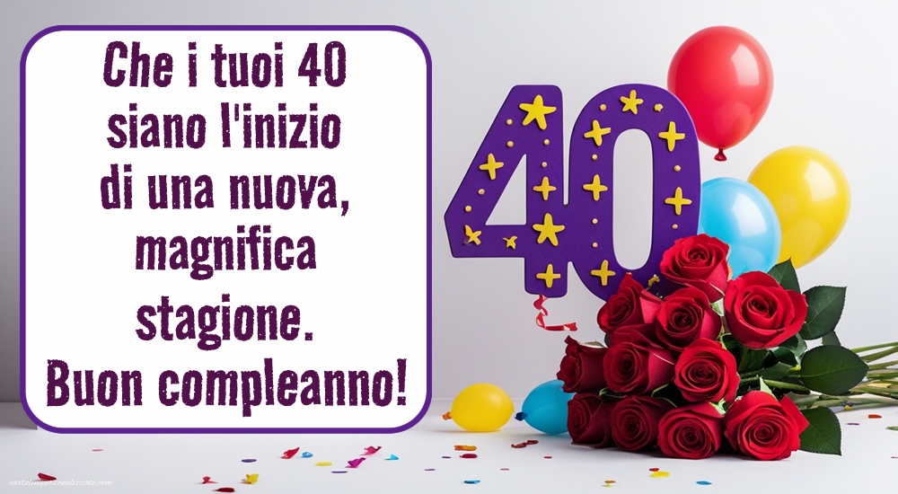 I 40 anni sono un compleanno importante, simbolo di maturità, energia e nuove esperienze. Per rendere questa giornata davvero unica, qui troverai una raccolta di immagini di buon compleanno per i 40 anni ⭐, ideali da condividere su WhatsApp, Facebook, Instagram o da stampare come biglietto di auguri. Dalle immagini divertenti e simpatiche a quelle eleganti e affettuose, ogni proposta è pensata per celebrare questo traguardo con gioia ed emozione. Un’immagine accompagnata da una frase speciale renderà i festeggiamenti dei 40 anni ancora più indimenticabili.