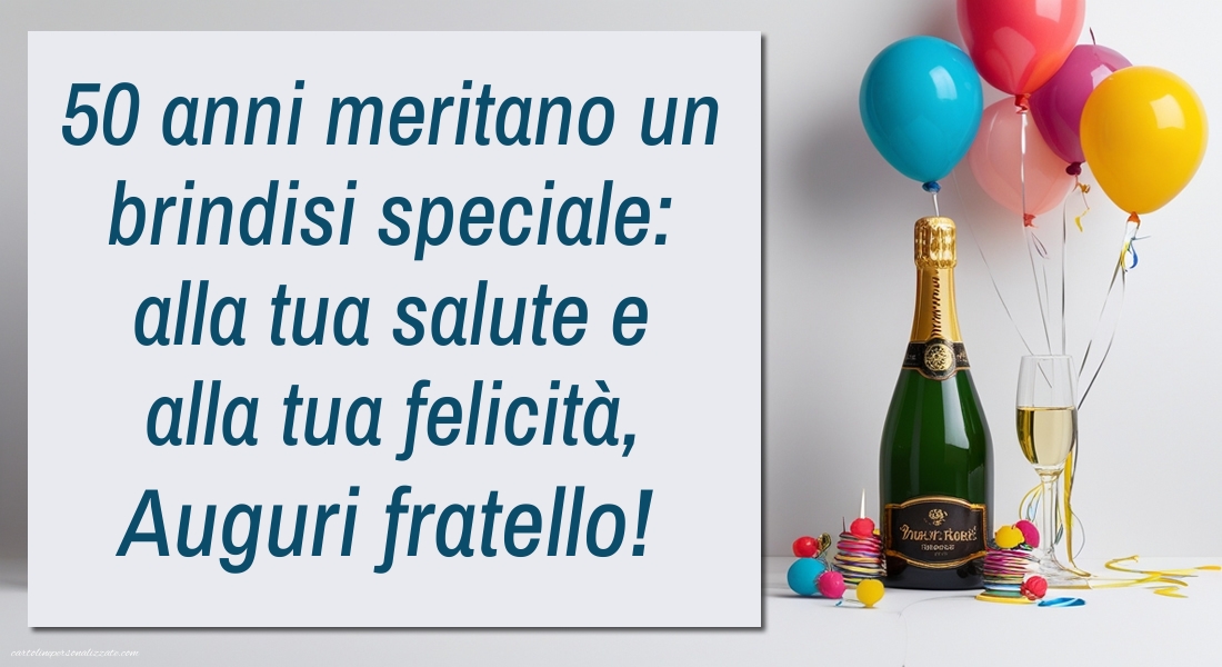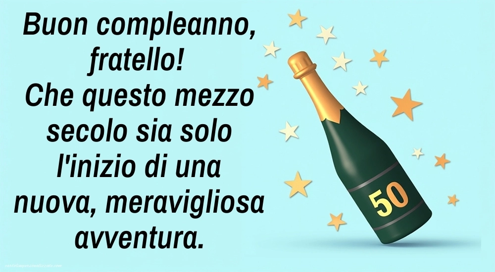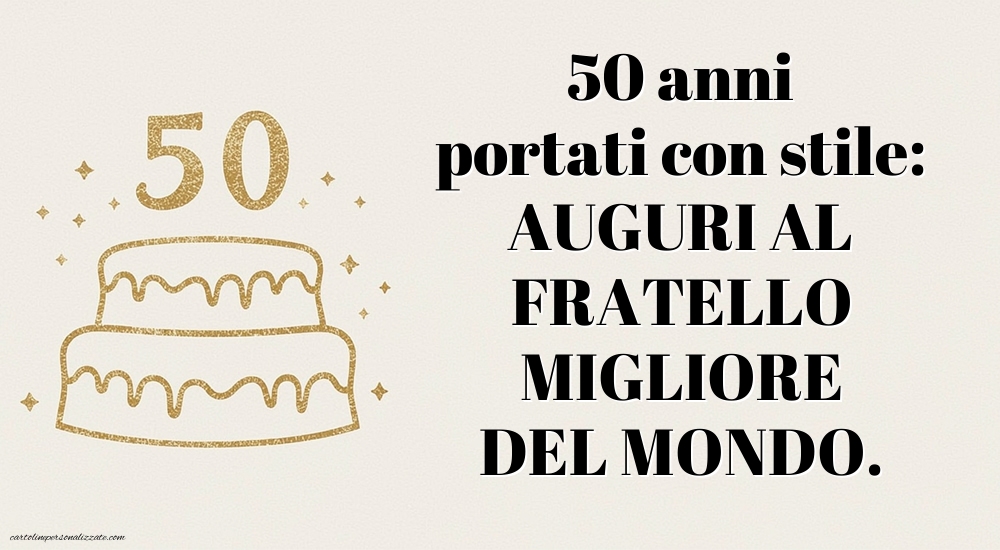 Il 50° compleanno è un traguardo importante e merita di essere festeggiato con gioia e affetto. Se tuo fratello compie 50 anni ⭐, sorprenderlo con un’immagine di buon compleanno può rendere il giorno ancora più speciale. In questa pagina troverai una selezione di immagini di buon compleanno per fratelli che compiono 50 anni, tra messaggi divertenti, affettuosi e originali, perfette da condividere su WhatsApp, social o da stampare accanto a un regalo. Celebra mezzo secolo di ricordi, risate e momenti indimenticabili con un augurio unico e sentito.