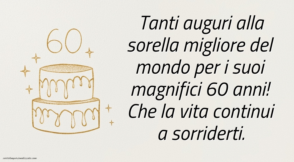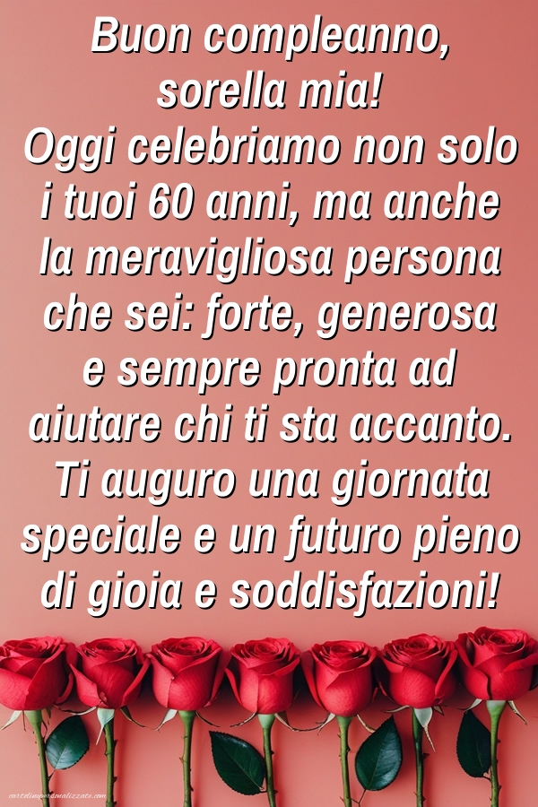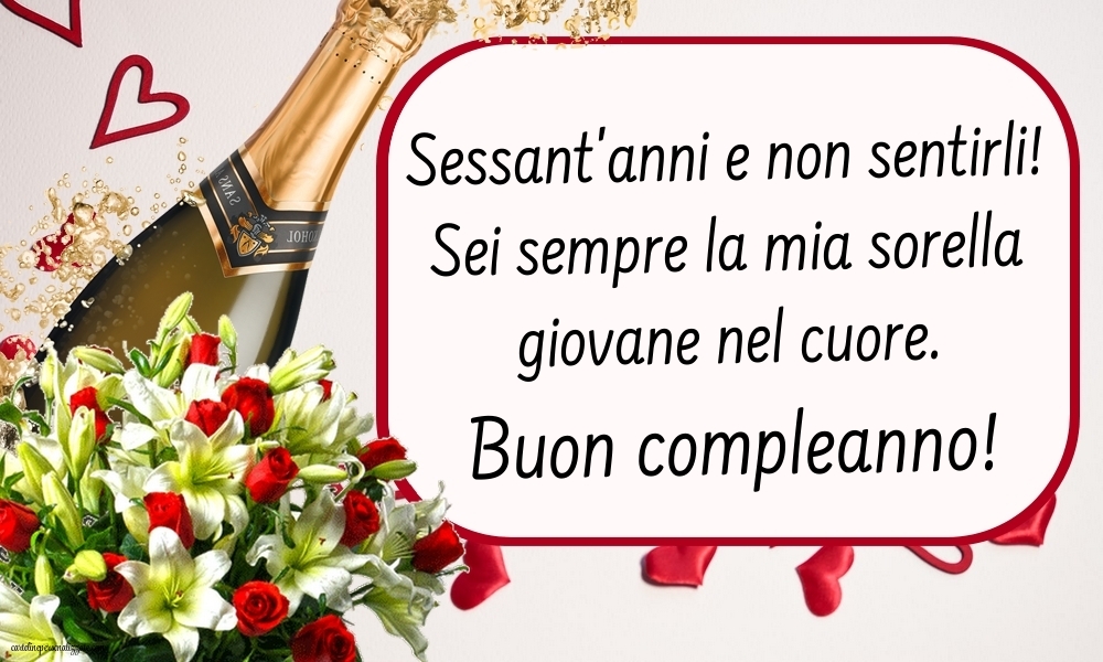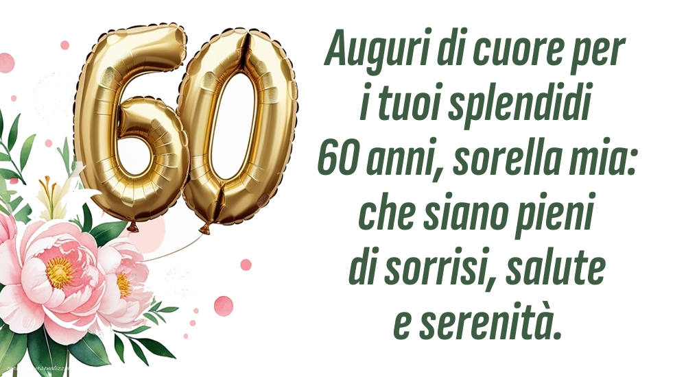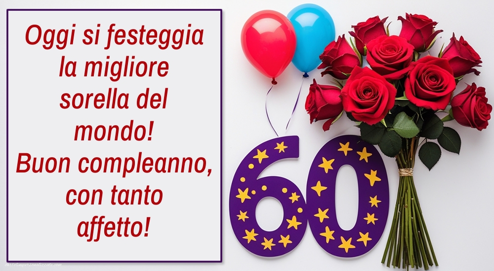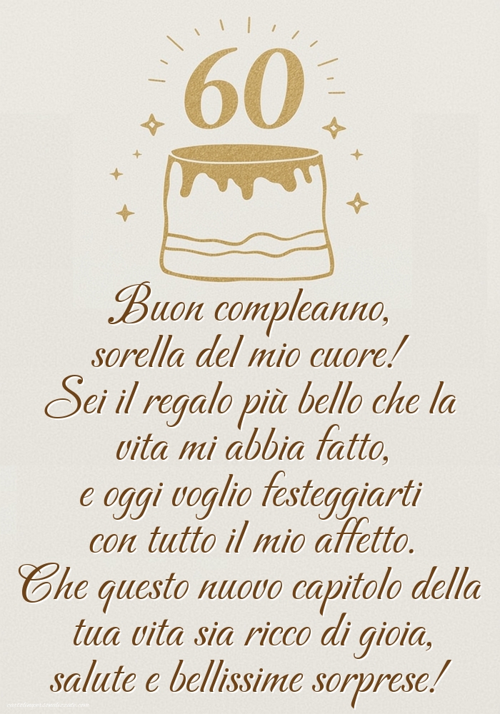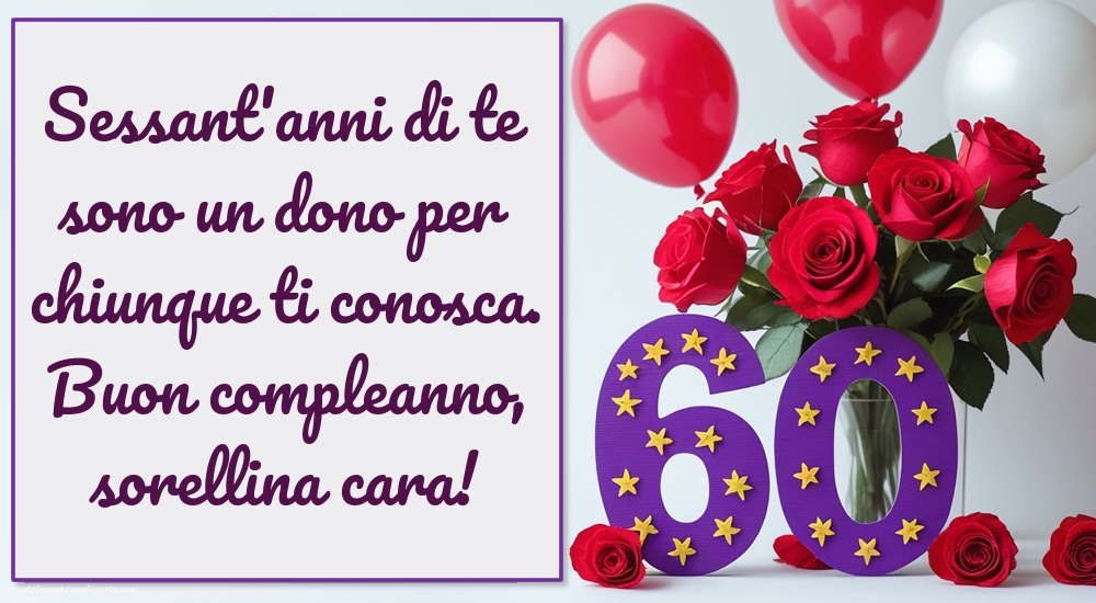 Festeggiare i 60 anni di una sorella ⭐ è un momento unico, ricco di emozioni e significato. Per rendere questa giornata ancora più speciale, abbiamo raccolto una selezione di immagini di buon compleanno per una sorella di 60 anni, perfette da condividere con chi ami. Troverai cartoline colorate, immagini eleganti e foto con frasi affettuose pensate per celebrare questo traguardo importante. Che tu voglia un’immagine dolce e romantica o una più allegra e divertente, qui troverai l’ispirazione giusta.