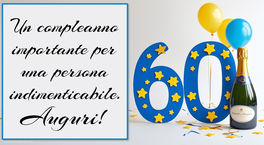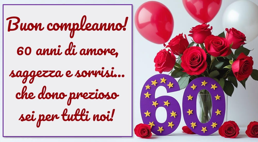 I 60 anni rappresentano un traguardo importante, un momento da celebrare con affetto, allegria e gratitudine. Le immagini di buon compleanno 60 anni ⭐ sono perfette per sorprendere una persona cara e rendere la sua festa ancora più speciale. In questa pagina troverai una raccolta di immagini uniche e colorate, abbinate a frasi dolci, divertenti e affettuose, ideali per esprimere tutto l’amore e la gioia di questo giorno. Potrai scaricarle gratuitamente e condividerle facilmente su WhatsApp, Facebook, Instagram o email. Che si tratti di un familiare, un amico o una persona speciale, un’immagine di auguri per i 60 anni renderà questo compleanno indimenticabile e pieno di emozioni.