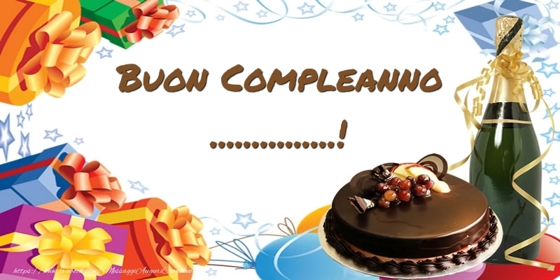 Cartolina di buon compleanno personalizzata con champagne, regalo e torta e testo Buon Compleanno ...!. Prima di prendere qualsiasi regalo, è bene pensare a una cartolina attraverso il quale trasmettere i più bei pensieri di bene. Perché non personalizzare questa cartolina online con il nome desiderato.
