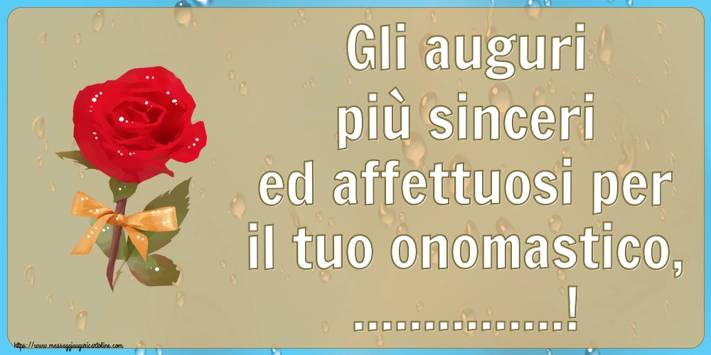 Cartolina personalizzata con una rosa rossa dipinta dalla categoria biglietti di onomastico con nome e ha il testo Gli auguri più sinceri ed affettuosi per il tuo onomastico, ...!. Crea questa cartolina con il nome che desideri in meno di 1 minuto!