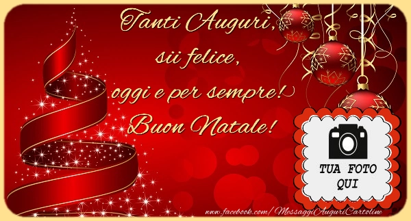In pochi secondi puoi personalizzare online questa cartolina dalla categoria di Natale con la tua foto profilo Facebook con Albero di Natale & Palle Di Natale & Cornice e testo Tanti Auguri, sii felice, oggi e per sempre! Buon Natale!. Entra su Facebook, compila i campi necessari, clicca sul pulsante 'Personalizza' e la cartolina verrà generata!