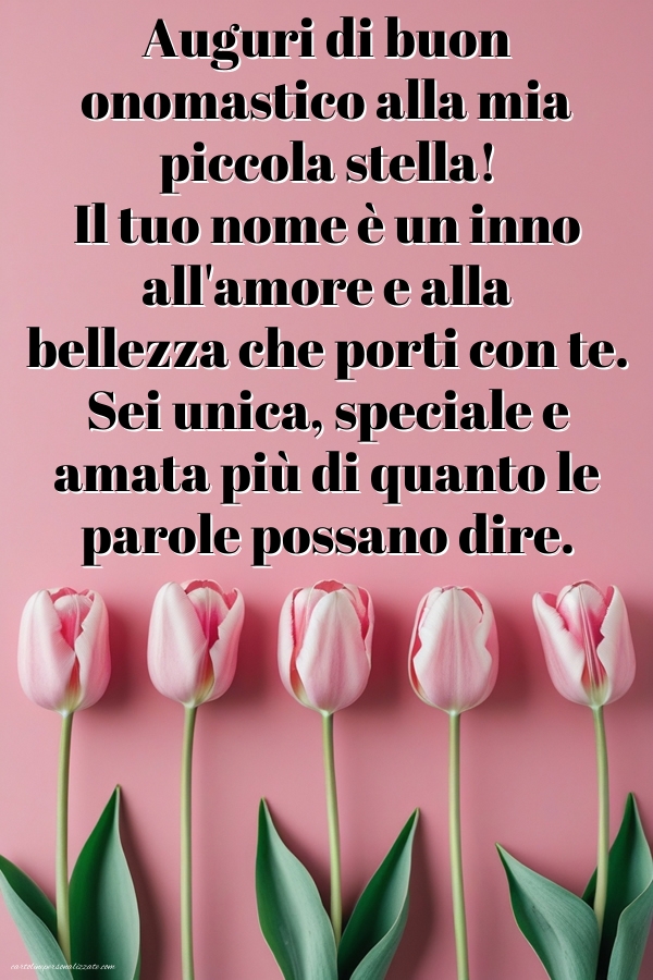 L’onomastico della figlia ⭐ è un momento speciale da festeggiare con amore e dolcezza. Le immagini di auguri di buon onomastico per la figlia sono il modo perfetto per dimostrarle quanto sia importante e amata, trasformando il suo giorno in un ricordo indimenticabile. In questa pagina troverai una raccolta di immagini arricchite con frasi dolci, originali e affettuose, pensate per sorprendere la figlia e celebrare il suo nome con gioia. Potrai condividerle facilmente su WhatsApp, Facebook, Instagram oppure usarle per creare un biglietto personalizzato. Che sia una bambina o una giovane donna, ogni figlia merita un pensiero speciale: scegli l’immagine giusta, accompagnala con parole sincere e rendi unico il suo onomastico.