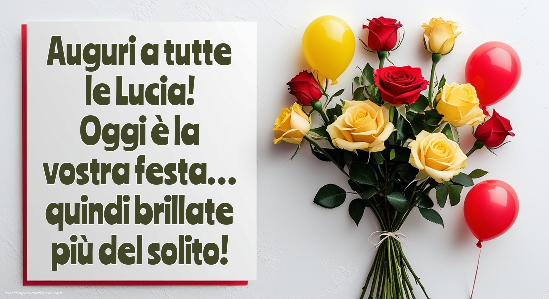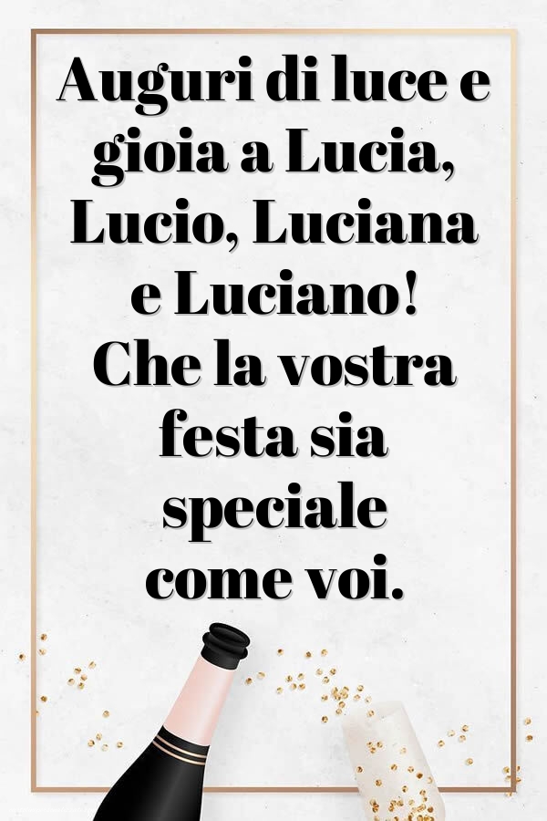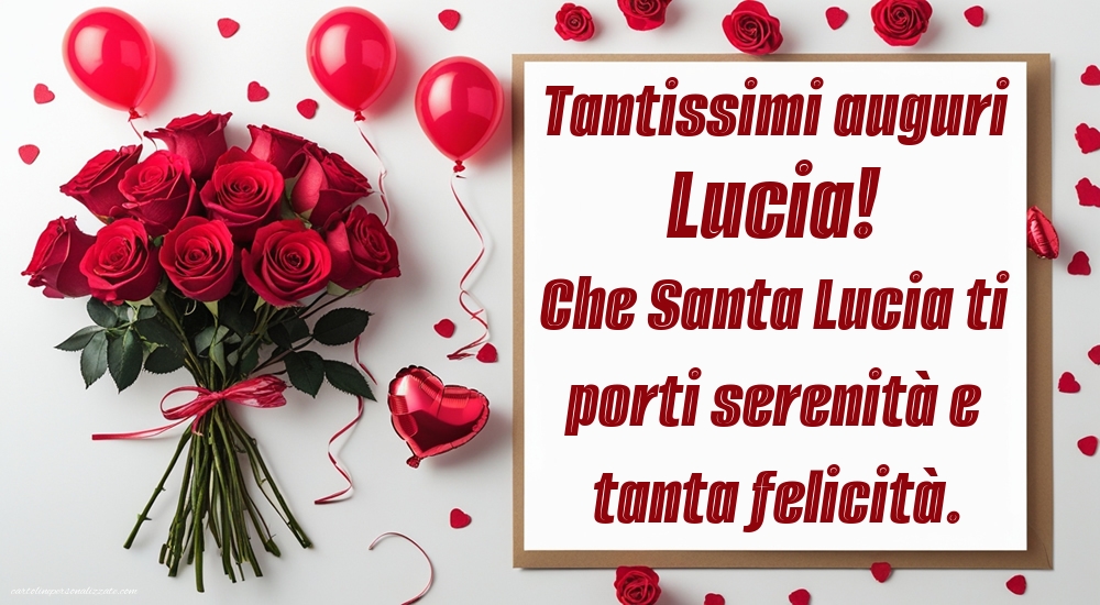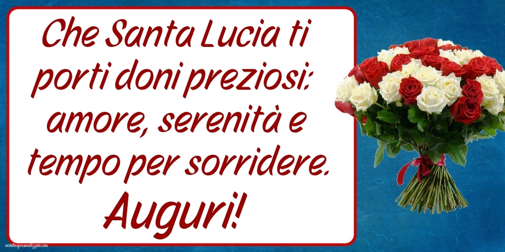 Il 13 dicembre è il giorno dedicato a Santa Lucia, simbolo di luce, serenità e speranza. In questa pagina troverai una raccolta di immagini di auguri per Santa Lucia, ideali per inviare un pensiero speciale ad amici, familiari o a chi porta il nome Lucia. Le immagini includono cartoline luminose, grafiche natalizie, illustrazioni delicate, simboli religiosi e messaggi affettuosi, tutte perfette per essere condivise su WhatsApp, Facebook, Instagram o per accompagnare un augurio scritto. Ogni immagine è creata per trasmettere calore, luce e pace, rendendo questa ricorrenza ancora più speciale. Scegli l’immagine che preferisci e condividila per celebrare Santa Lucia con un tocco di bellezza e significato.