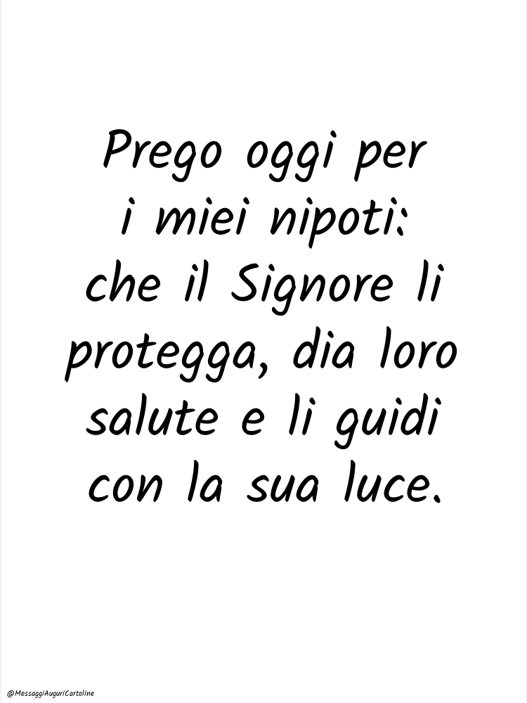 Prego oggi per i miei nipoti: che il Signore li protegga, dia loro salute e li guidi con la sua luce.