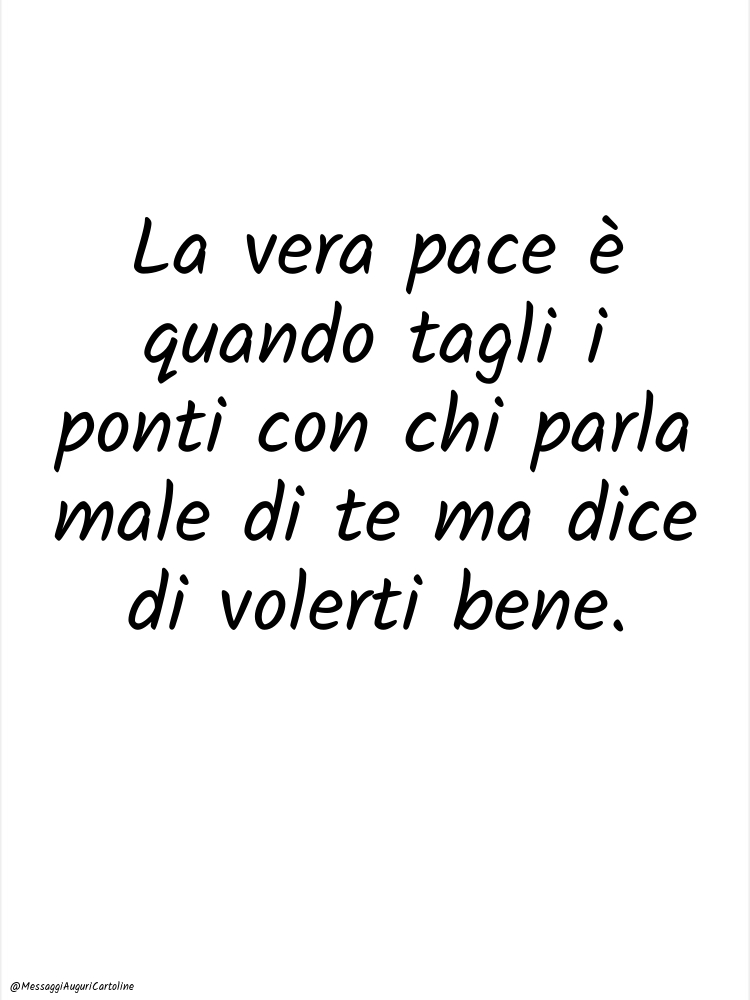 La vera pace è quando tagli i ponti con chi parla male di te ma dice di volerti bene.