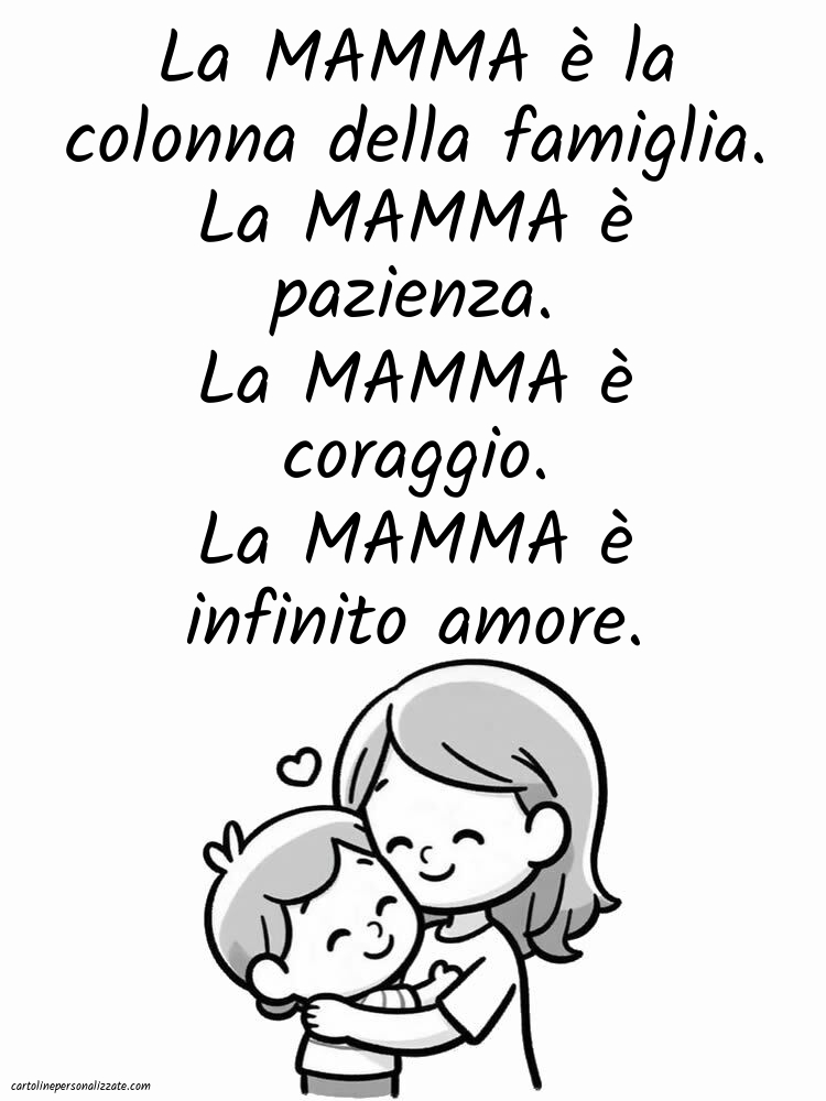 La MAMMA è la colonna della famiglia. La MAMMA è pazienza. La MAMMA è coraggio. La MAMMA è infinito amore.