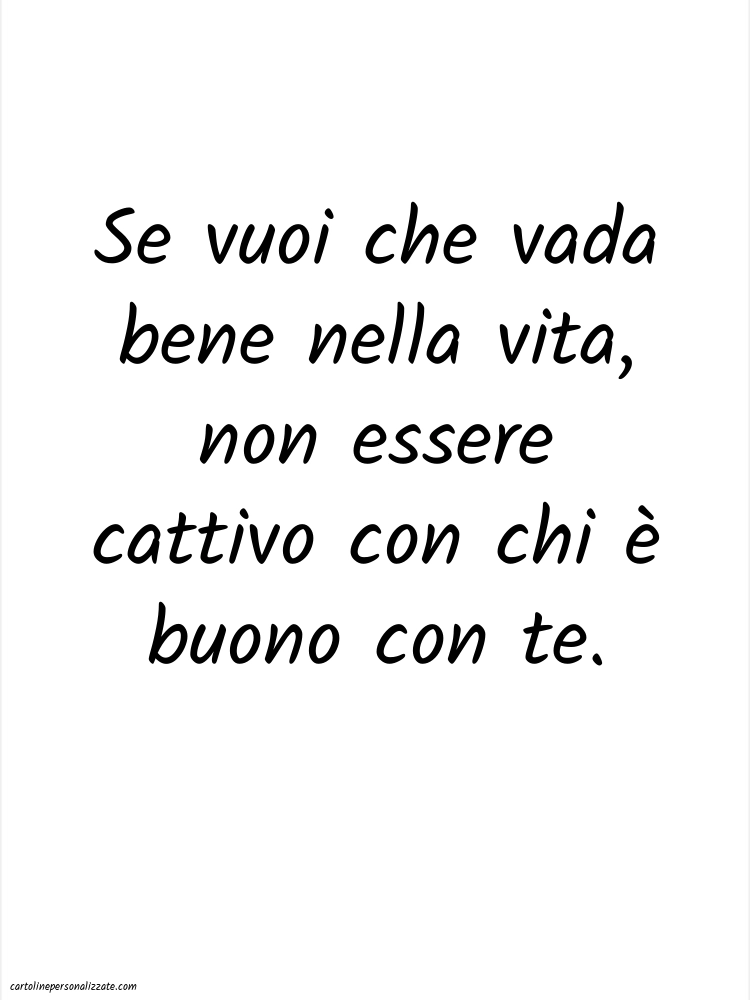 Se vuoi che vada bene nella vita, non essere cattivo con chi è buono con te.