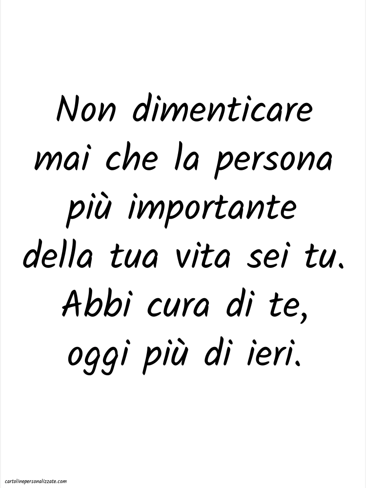 Non dimenticare mai che la persona più importante della tua vita sei tu. Abbi cura di te, oggi più di ieri.