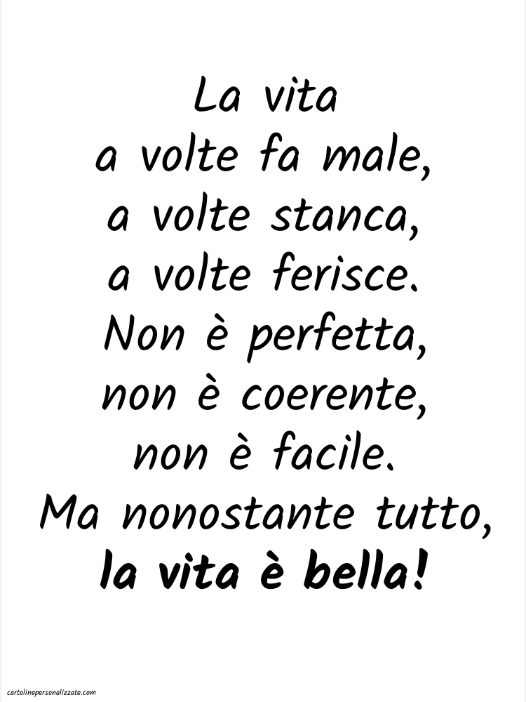 La vita a volte fa male, a volte stanca, a volte ferisce. Non è perfetta, non è coerente, non è facile. Ma nonostante tutto, la vita è bella!