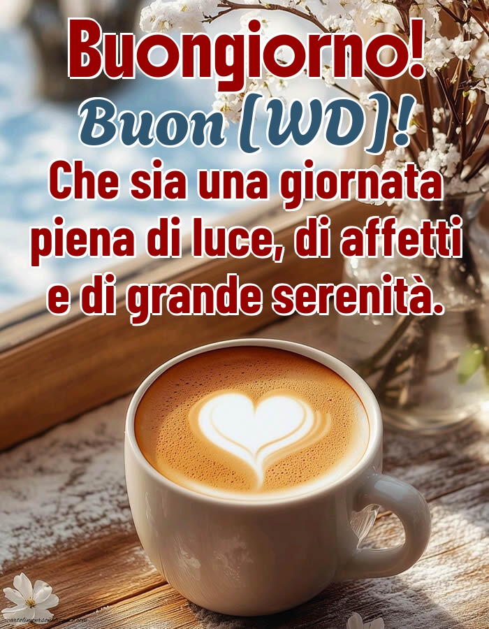 Buongiorno! Buon [WD]! Che sia una giornata piena di luce, di affetti e di grande serenità.