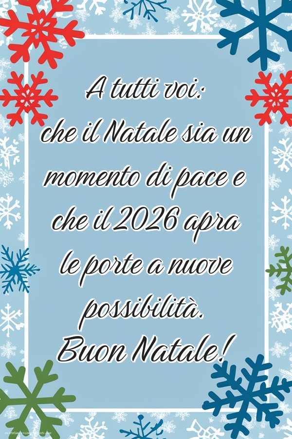 A tutti voi: che il Natale sia un momento di pace e che il 2026 apra le porte a nuove possibilità.