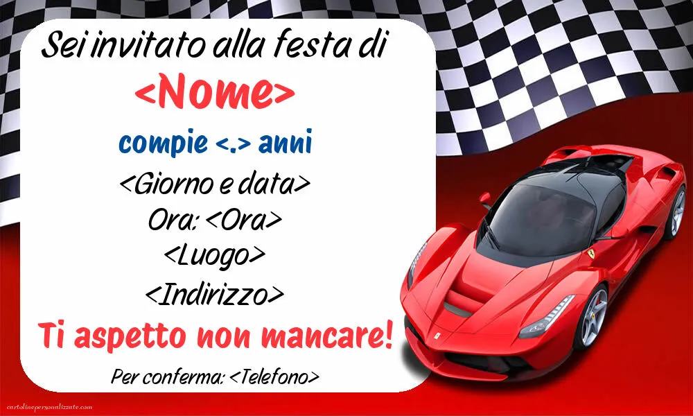 Stai organizzando il compleanno di tuo figlio e desideri un modo originale, energico e divertente per invitare i suoi amici alla festa? Questo invito di compleanno per bambini a tema Ferrari è perfetto per tutti i piccoli appassionati di macchine veloci, motori rombanti e corse emozionanti.