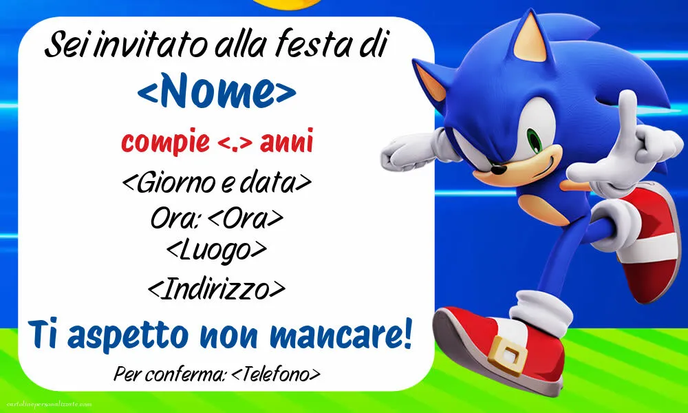 Si avvicina il compleanno di tuo figlio e cerchi un modo originale e divertente per invitare i suoi amici alla festa? Questo invito per bambini con Sonic è perfetto per tutti i piccoli fan del celebre riccio blu.